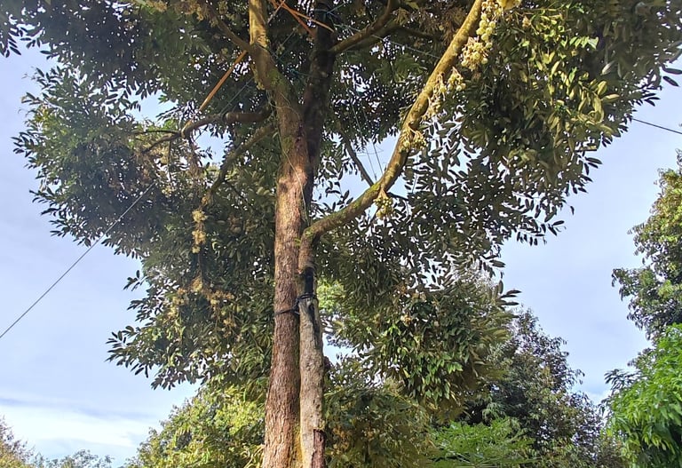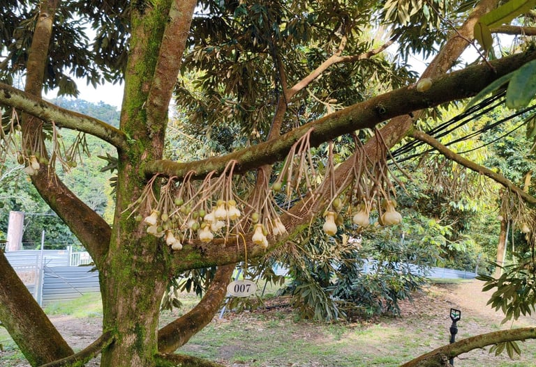 While durian trees are typically hermaphroditic (having both male and female parts), some farmers have noticed that certain trees tend to produce more male flowers (which are ineffective for fruiting) or more female flowers (which are more likely to bear fruit). It’s one of the reasons why pollination can be inconsistent.