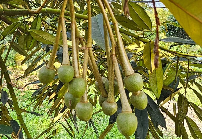 Durian trees require a tropical climate with consistent rainfall—at least 1,500 mm of rainfall per year. They also prefer temperatures between 25°C and 35°C. If there's a prolonged dry season, the tree can become stressed and produce fewer fruits.