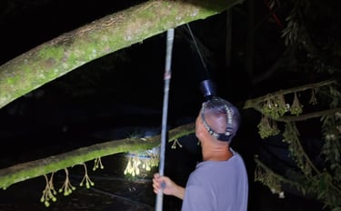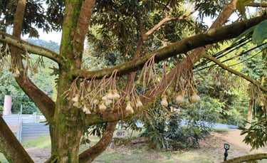 This year, heavy rains arrived too early and too often. Many durian flowers were lost, washed away before they could bloom into fruit. But Mr. Wong, ever the learner, took a bold step — he introduced manual pollination in the evening hours, carefully transferring pollen from flower to flower by hand. It was meticulous, meditative work, but it paid off. Though the yield was smaller than 2024, the flavor was unparalleled — rich, complex, and with depth.