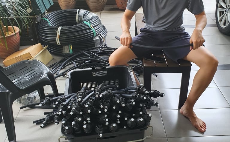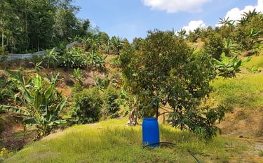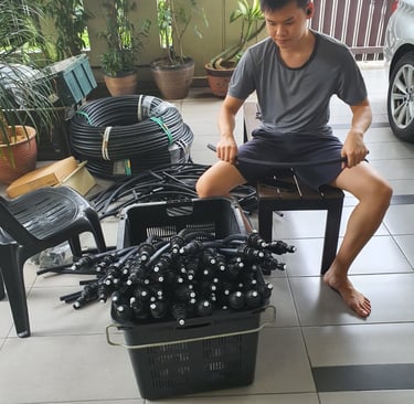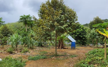 This year came with a hard lesson: even nature plays rough. As the durian trees matured rapidly, the original irrigation system could no longer keep up. A complete overhaul began, with new pipes and new pumps.