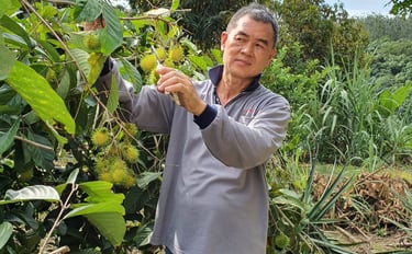 Four years since the first graft, Black Thorn durians — notoriously difficult and prized — began to bear fruit. It was a quiet miracle. Rambutans — both red and yellow — filled out their first full bunches, while guavas, coconuts, and passionfruit matured into taste and color. Every bite of fruit was a validation of patience.