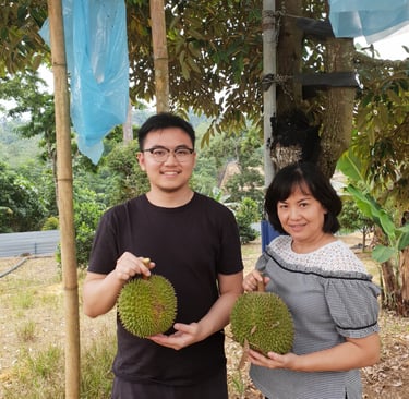 In March 2017, K. N. (Wong) and his wife stood on a quiet slope in Raub, Pahang, staring out at two modest plots of land thick with rubber trees. For many, it was just another patch of Malaysian countryside — but for the Wongs, it was the blank canvas of a dream. With a bold vision to grow premium durians, they began the painstaking process of transforming the rubber plantation into a durian haven.