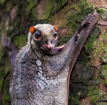 The Indochinese Spotted Giant Flying Squirrel, scientifically known as Petaurista marica, is a species of flying squirrel found in the forests of Southeast Asia, particularly in Indochina (Laos, Vietnam), extending into parts of Myanmar, Malaysia, and southern China.