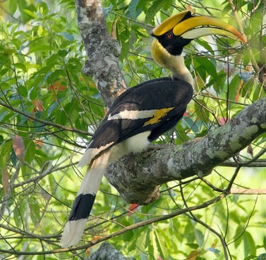 The great hornbill (Buceros bicornis), also known as the concave-casqued hornbill, great Indian hornbill or great pied hornbill, is one of the larger members of the hornbill family.