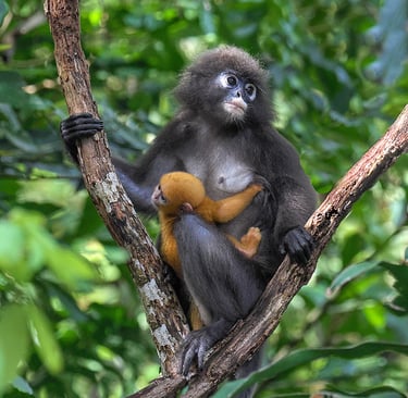 The dusky leaf monkey (Trachypithecus obscurus), also known as the spectacled langur or the spectacled leaf monkey.