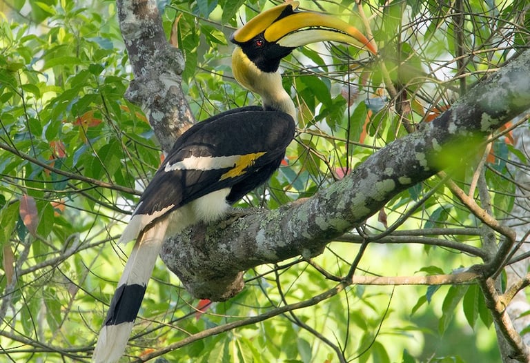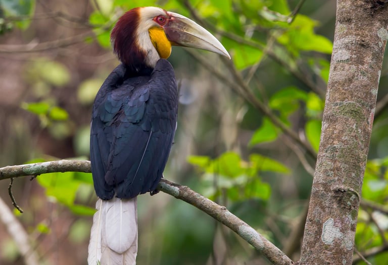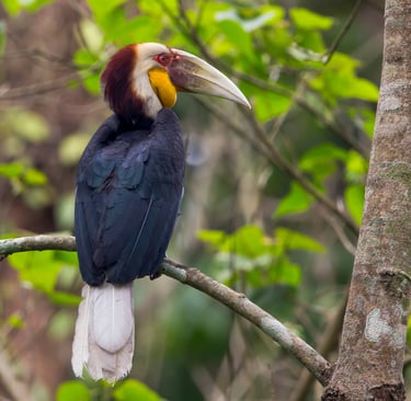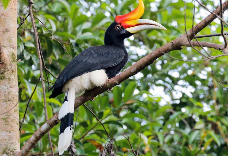 The Rhinoceros Hornbill occurs only in the forests of peninsular Malaysia and the islands of Sumatra, Java and Borneo.